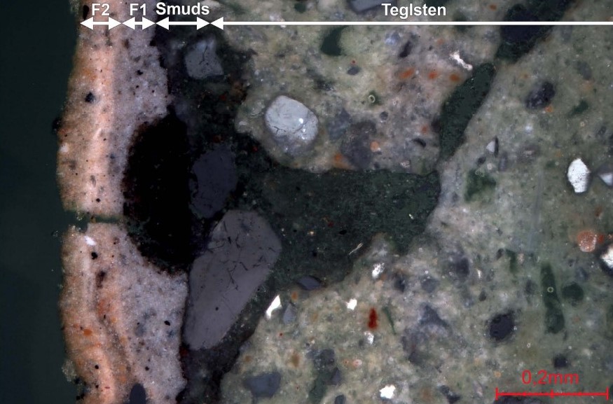 I forbindelse med en bevaringsopgave kan vi udtage og få analyseret materialeprøver. Ved at kombinere forskellige analysemetoder kan man få et mere dybdegående kendskab til materialet og dets bevaringstilstand, hvilket kan være afgørende for valg af behandlingsmetode. Puds- og farveprøver sender vi ind til analyse hos SEIR-Materialeanalyse A/S, mens prøver der har betydning for arbejdsmiljøet sendes ind til Arbejdsmiljøhuset ApS.